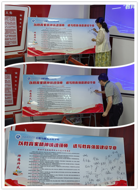 会议伊始,黄玉婵副院长作专题领学,传达了习近平总书记关于教育的重要论述精神,并带领全体教师深入学习《新时代高校教师职业行为十项准则》等文件。并强调,全体教师应深刻领会“教育家精神”的核心要义,将其内化于心、外化于行。学习结束后,全体教职员工庄重地签订了《湖北科技学院教师师德承诺书》,作出了对教育事业和职业道德的坚定承诺。