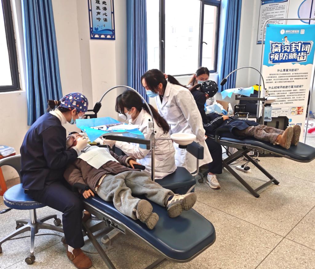 清晨八点,湖北科技学院五官学院与口腔医院的医护人员便携带专业设备抵达泉都学校。在精心布置的临时诊室内,孩子们有序排队接受口腔检查。周燕红教授亲自带领团队,为适龄学生进行细致的窝沟封闭治疗。